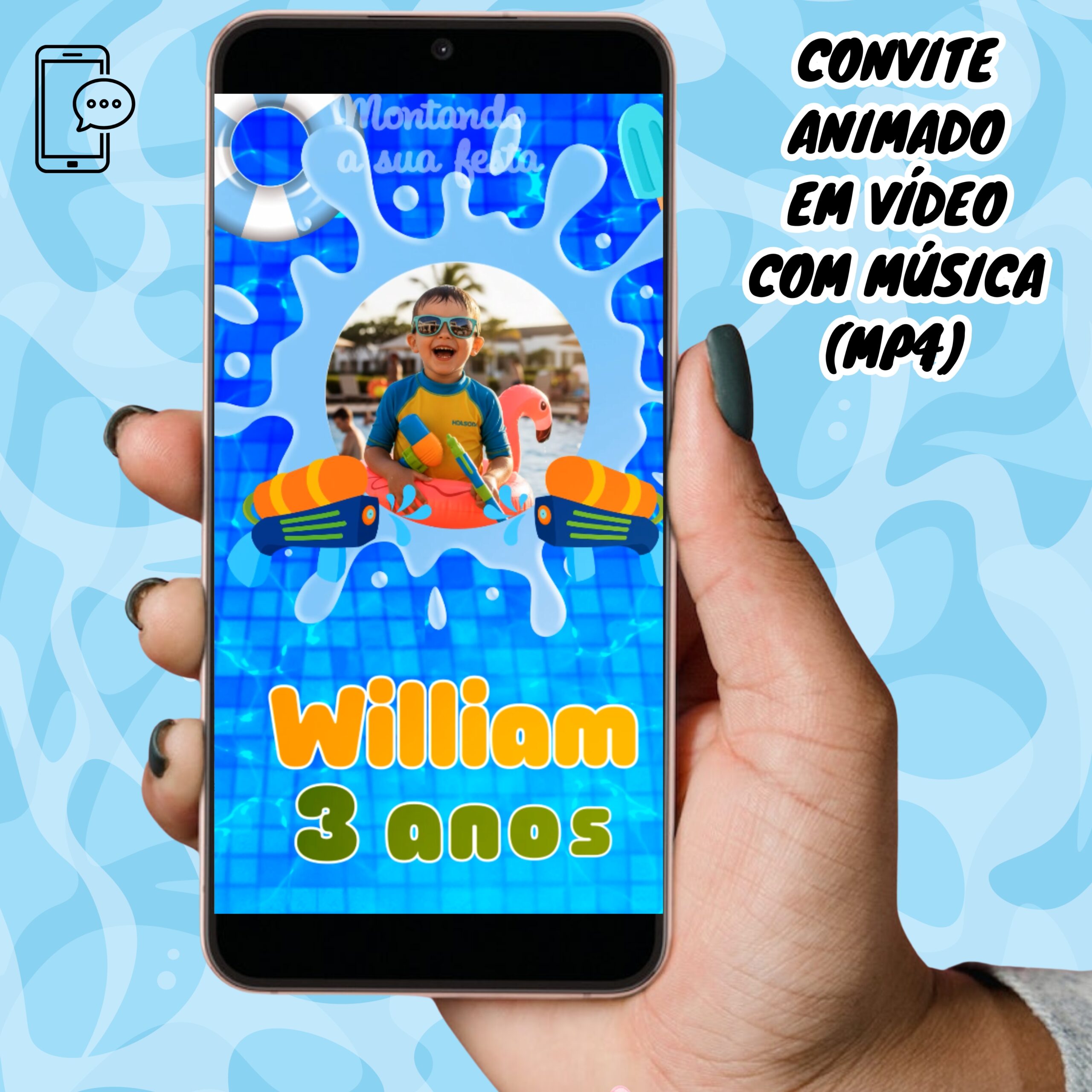 Convite Animado Pool Party em Vídeo com Música