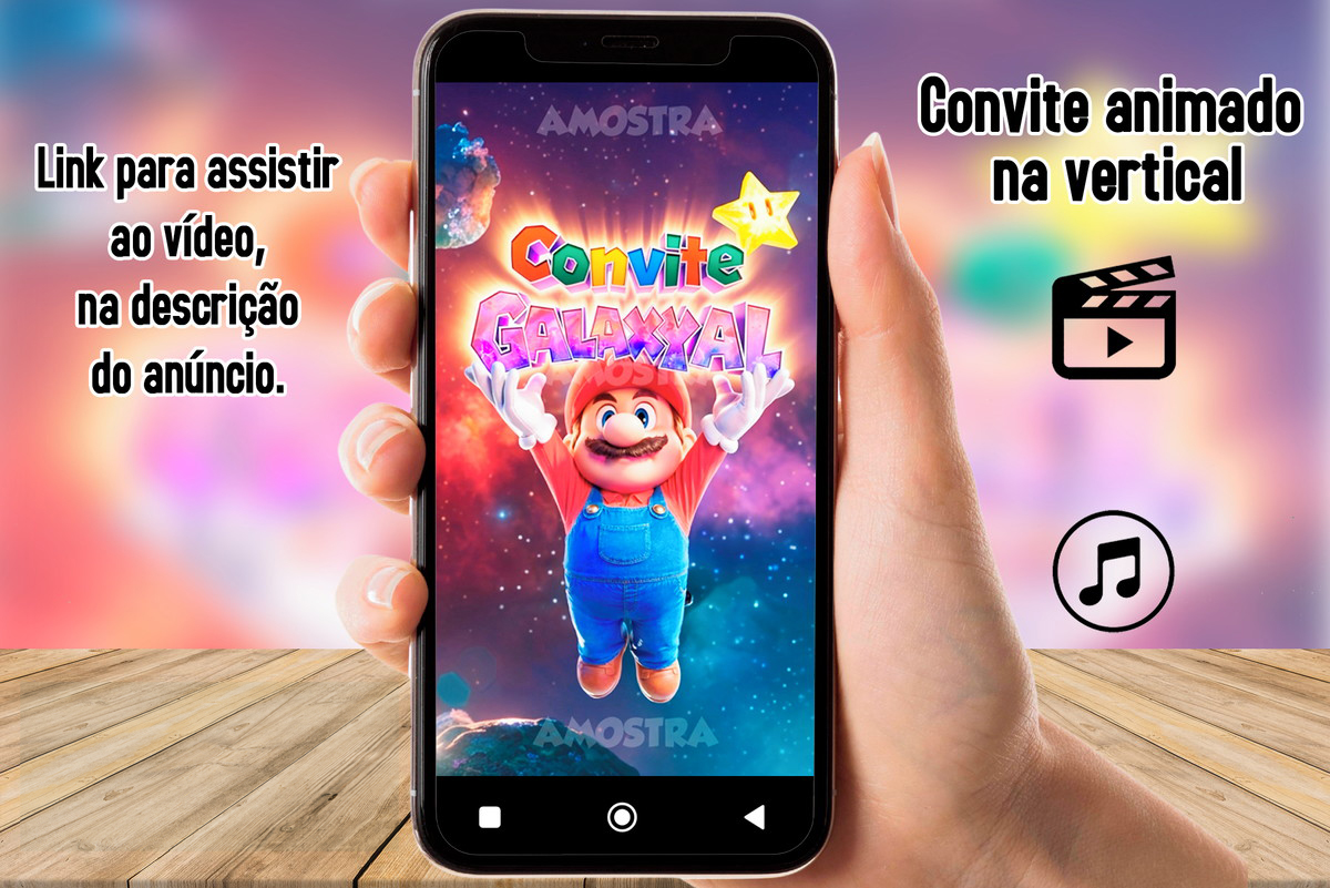 Convite Animado Vertical Super Mario em Vídeo com Música
