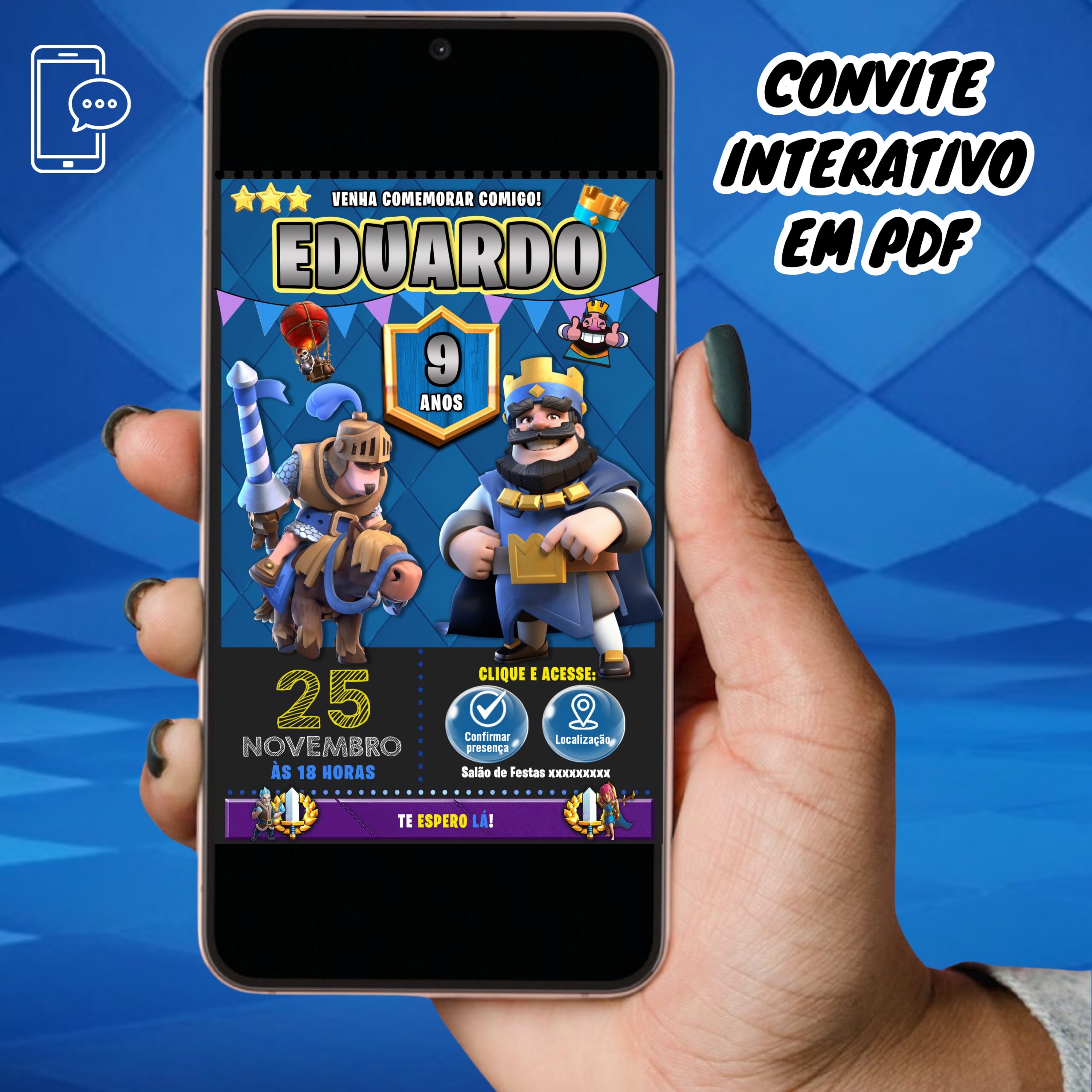 Convite Digital Interativo Clash Royale em PDF com Botões Clicáveis