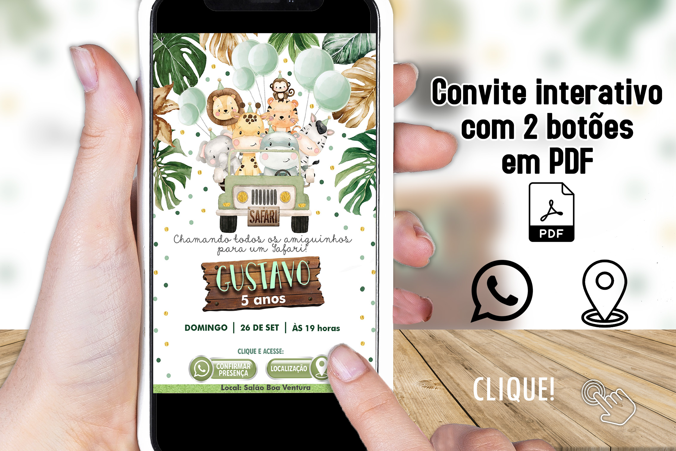 Convite Digital Interativo Safari em PDF com Botões Clicáveis