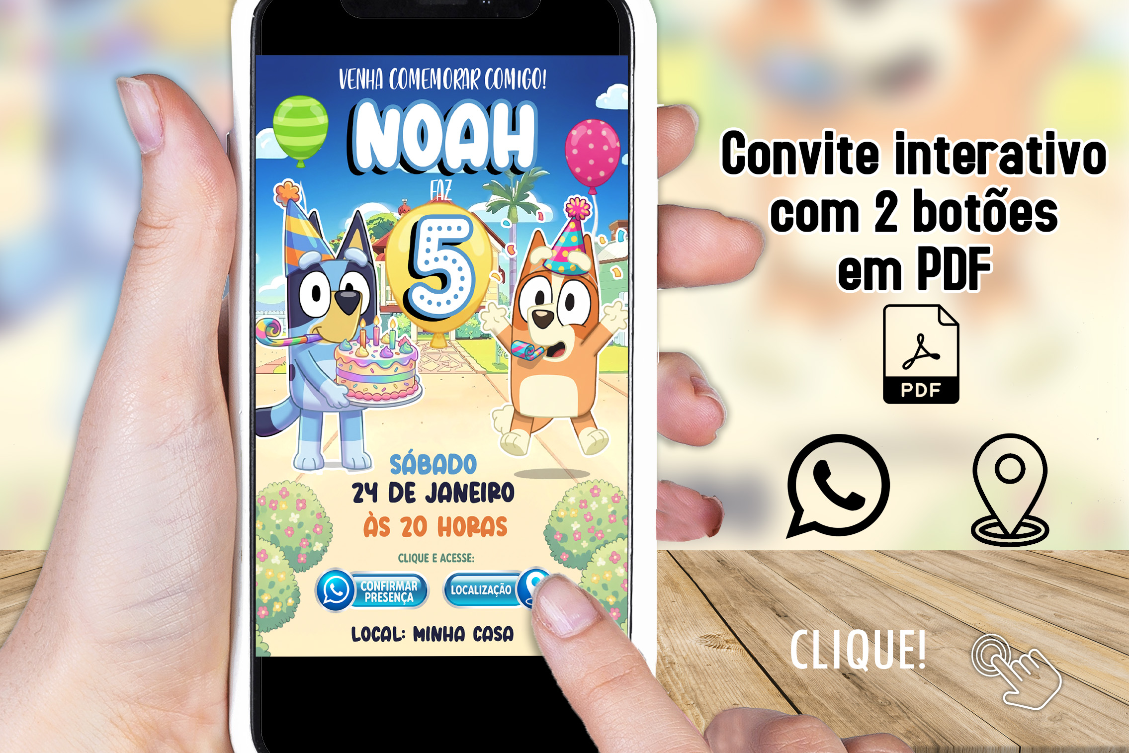 Convite Digital Interativo Bluey em PDF com Botões Clicáveis