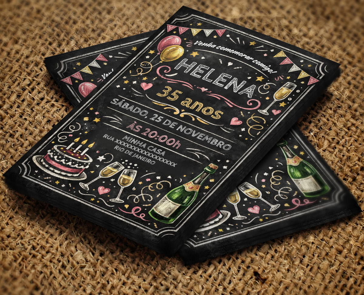 Convite Digital Chalkboard – Lousa – Adulto Menina – Sem Tema