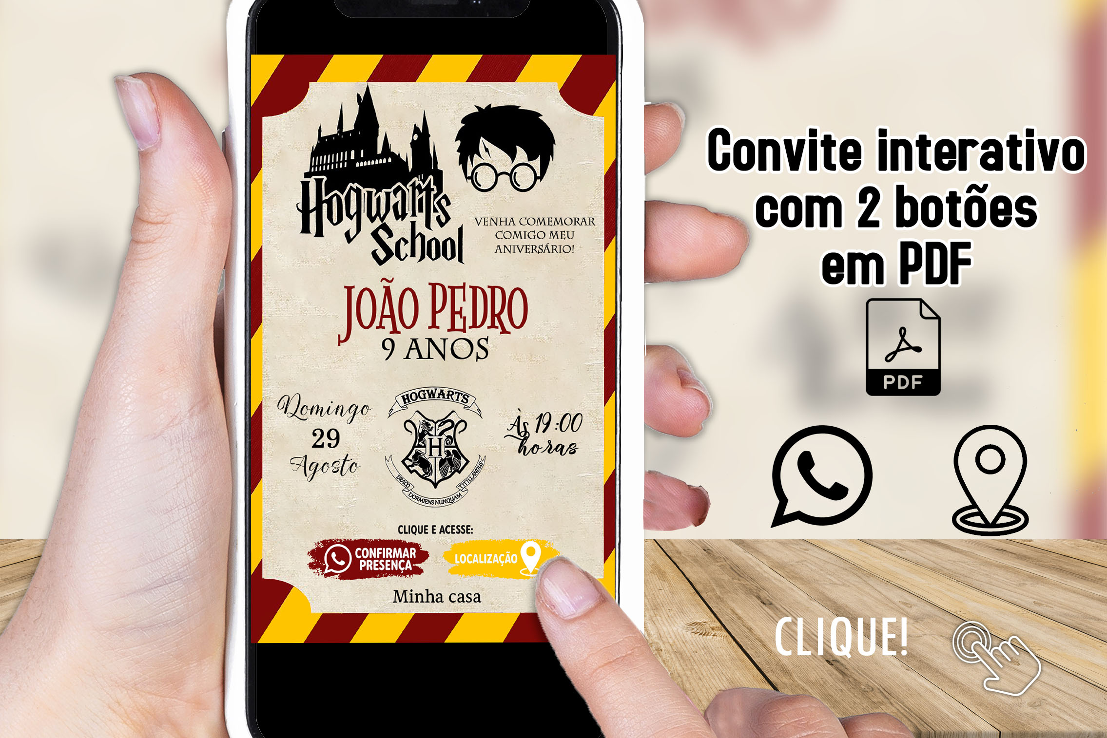 Convite Digital Interativo Harry Potter em PDF com Botões Clicáveis