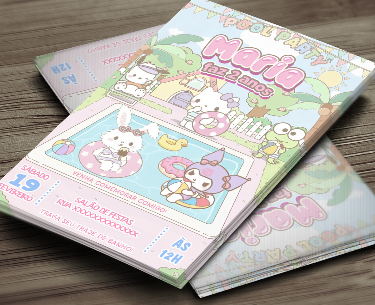 Convite Digital Hello Kitty Pool Party – Sanrio