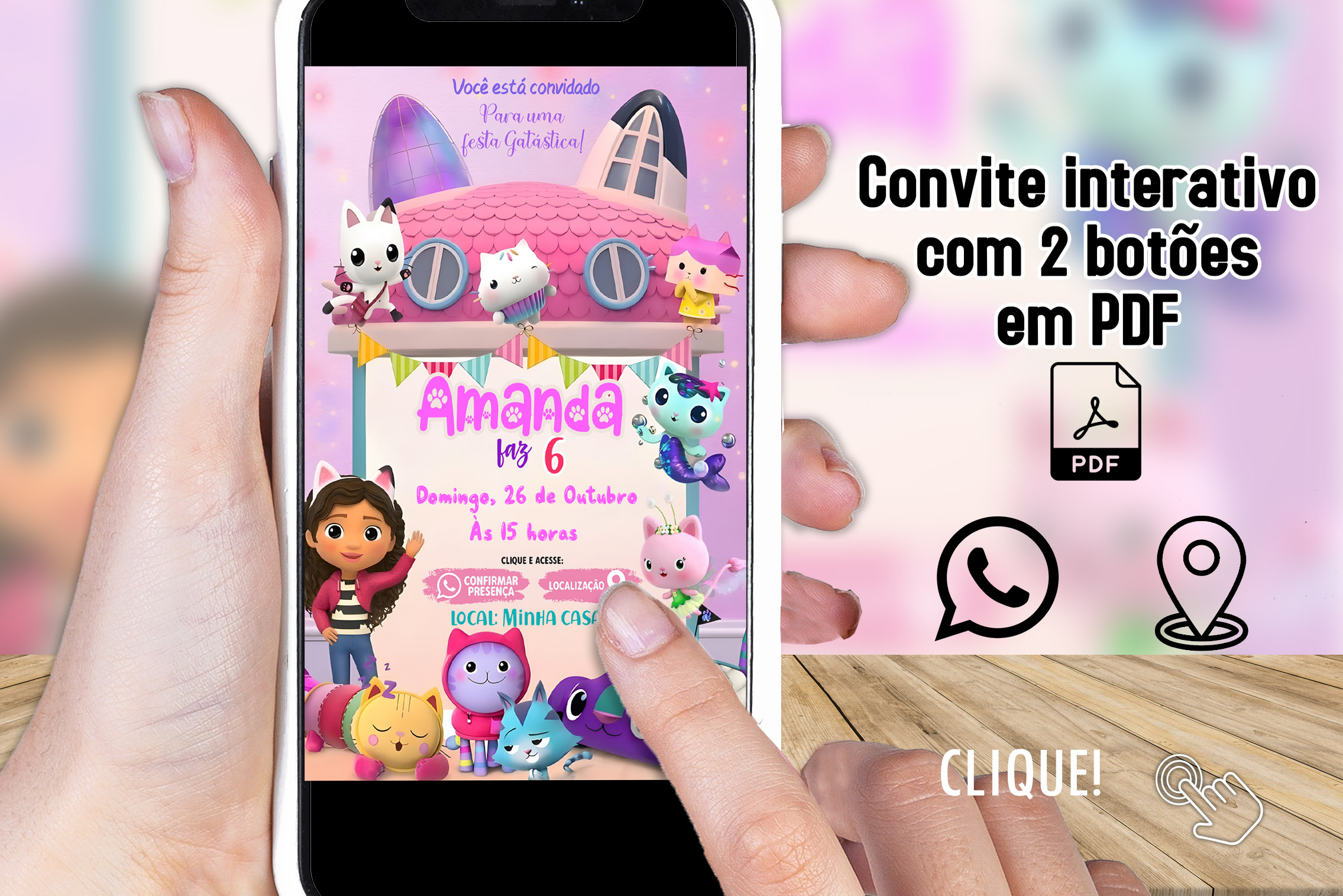 Convite Digital Interativo A Casa Mágica da Gabby em PDF com Botões Clicáveis