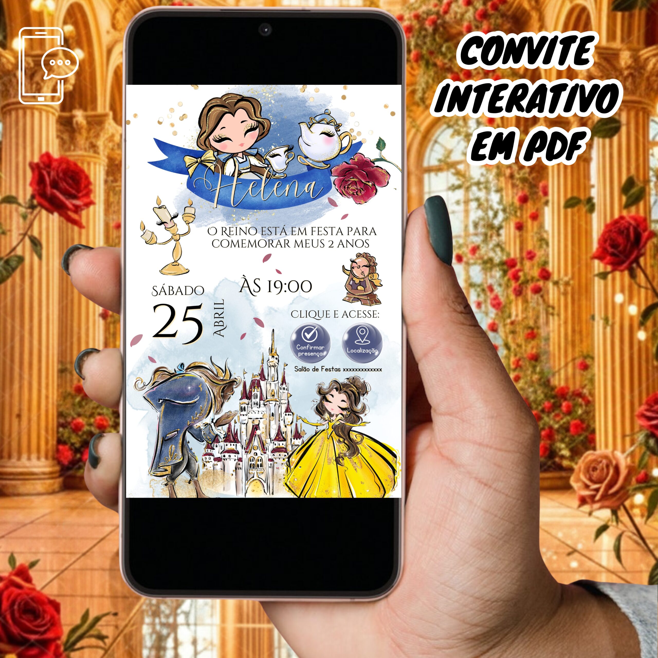Convite Digital Interativo Bela e a Fera em PDF com Botões Clicáveis