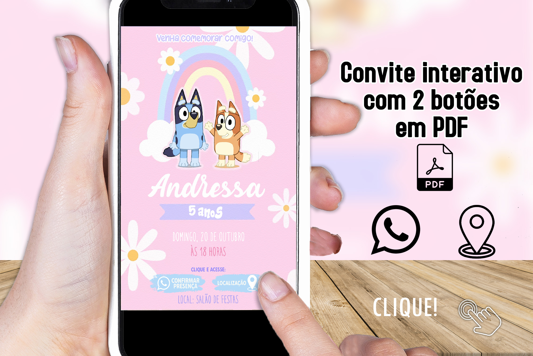 Convite Digital Interativo Bluey em PDF com Botões Clicáveis
