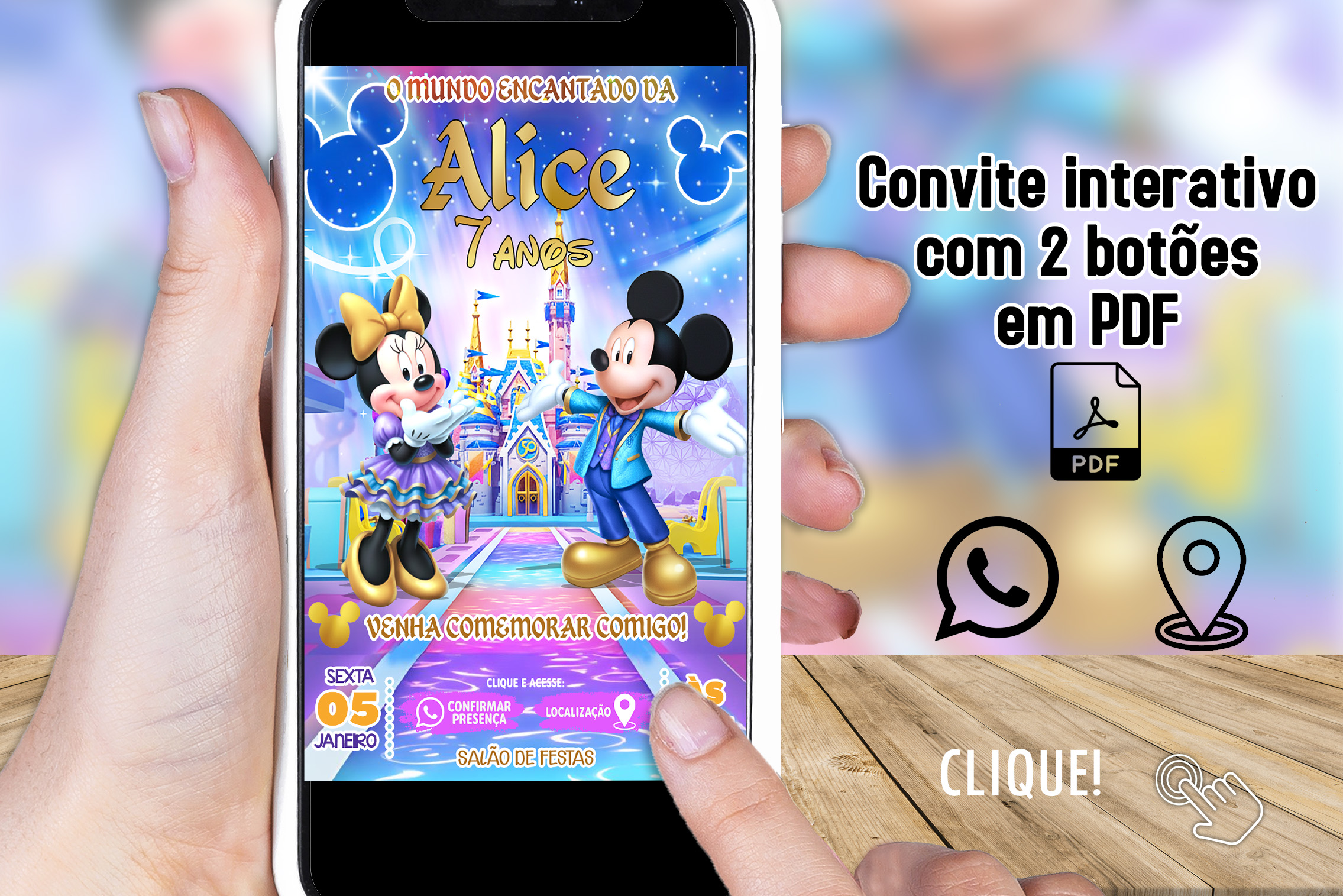 Convite Digital Interativo Disney 50 anos – Mickey e Minnie em PDF com Botões Clicáveis