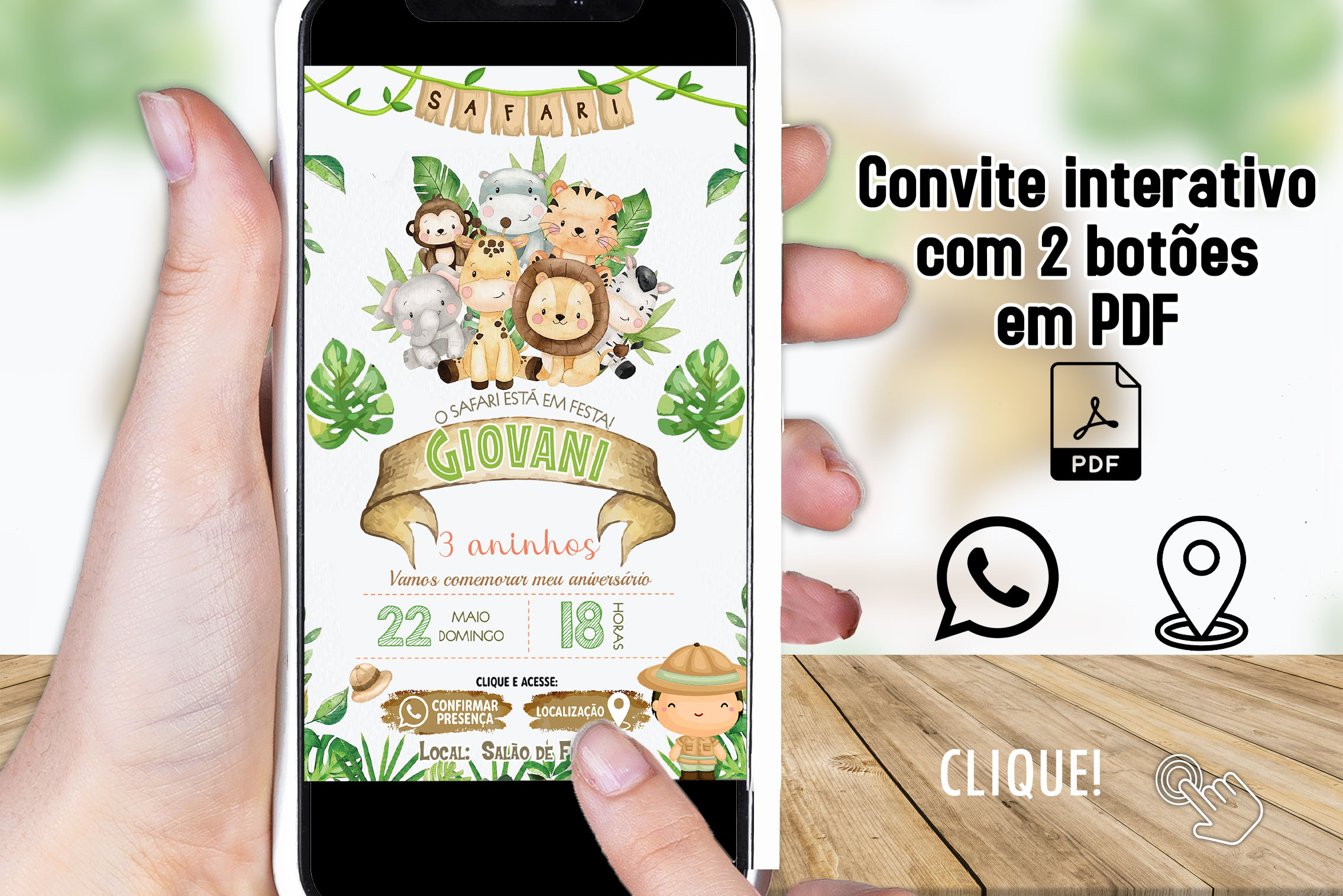 Convite Digital Interativo Safari em PDF com Botões Clicáveis