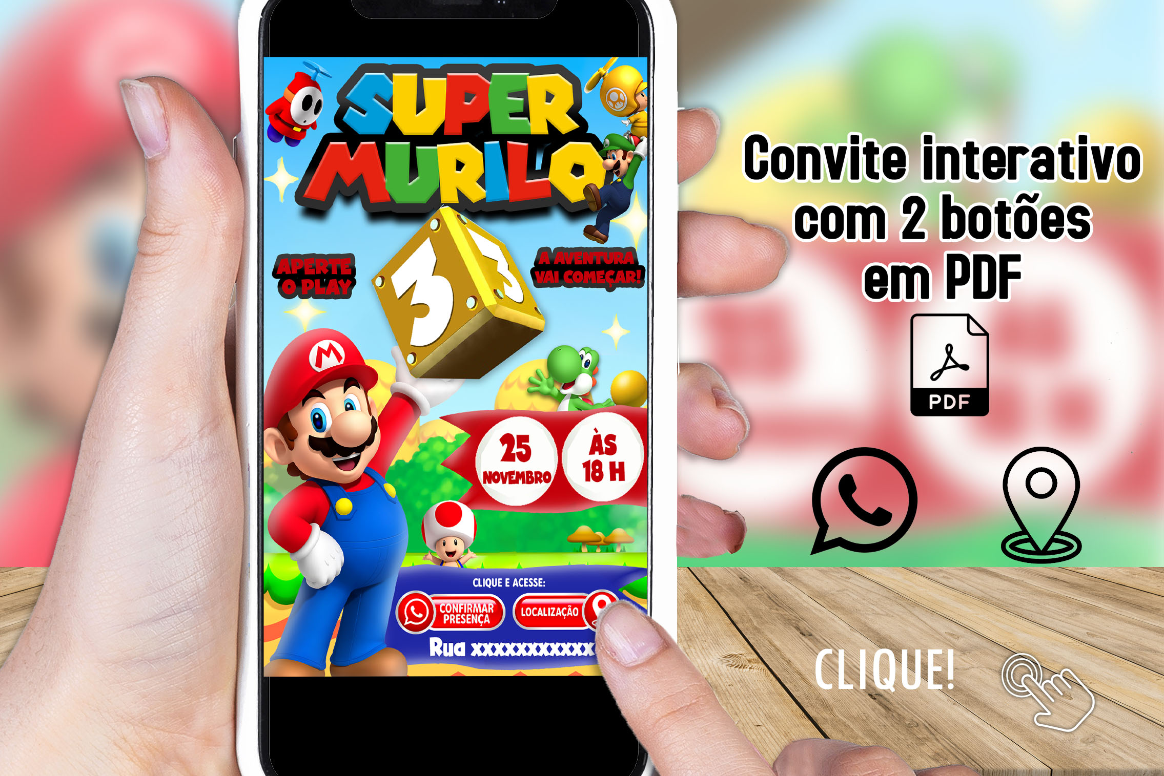 Convite Digital Interativo Super Mario em PDF com Botões Clicáveis