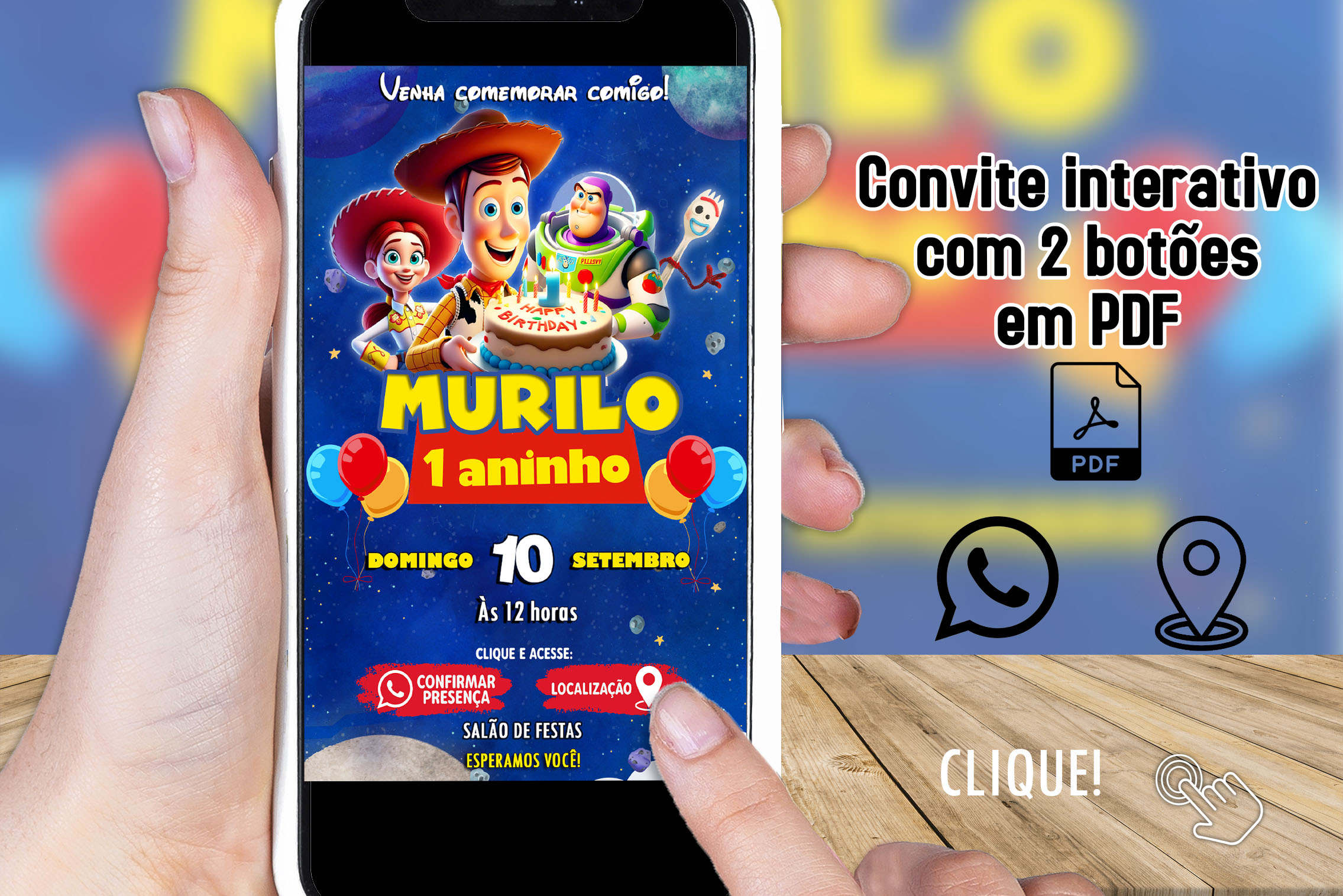 Convite Digital Interativo Toy Story em PDF com Botões Clicáveis