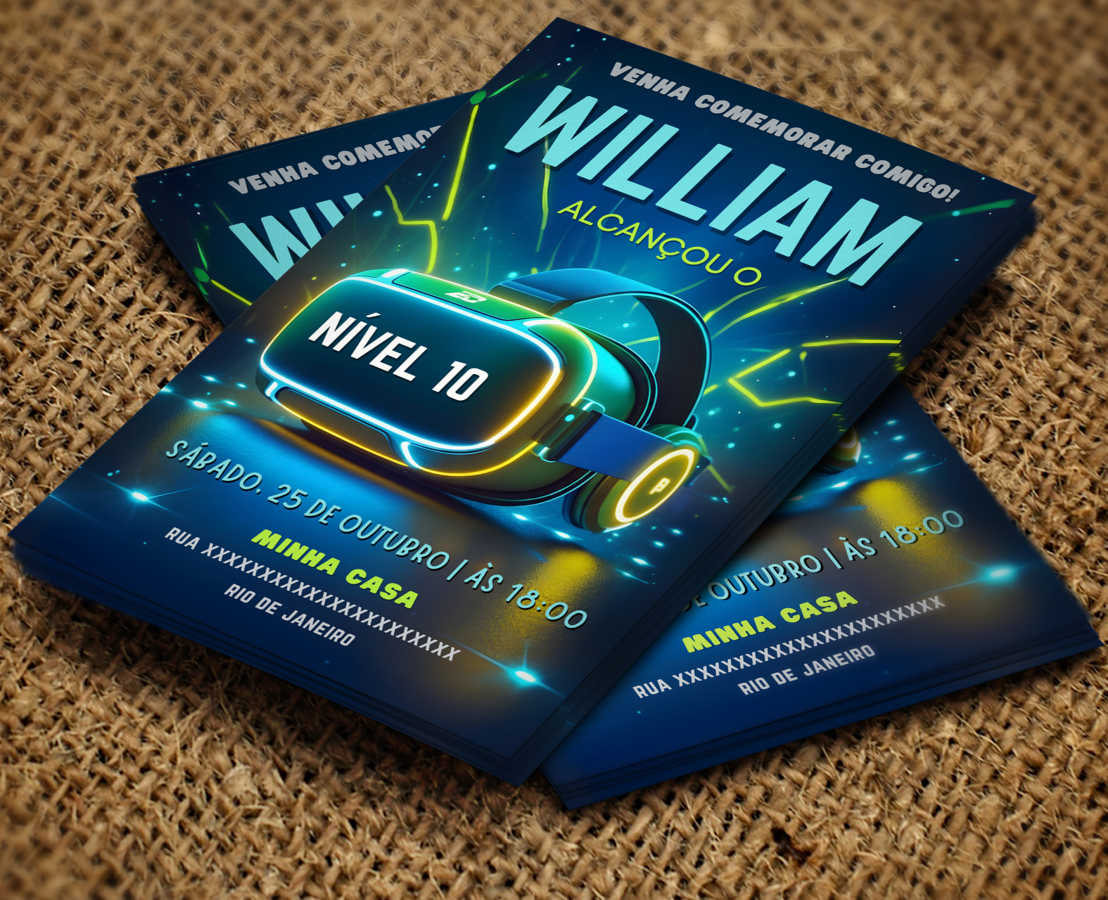 Convite Digital Vídeo Game – Videogame Gamer Óculos VR