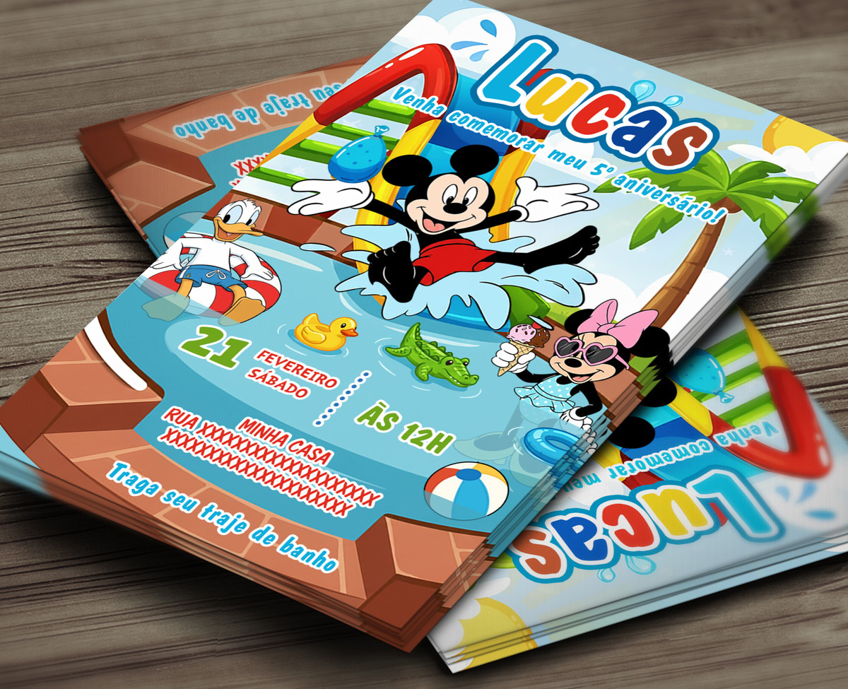 Convite Digital Mickey Pool Party