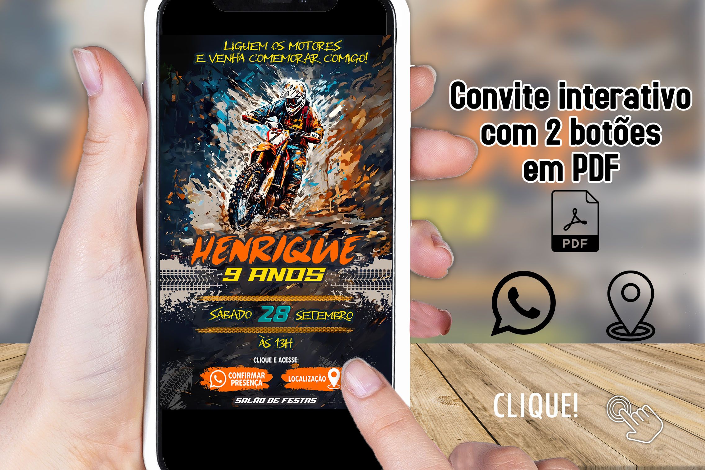 Convite Digital Interativo Moto – Motocross em PDF com Botões Clicáveis