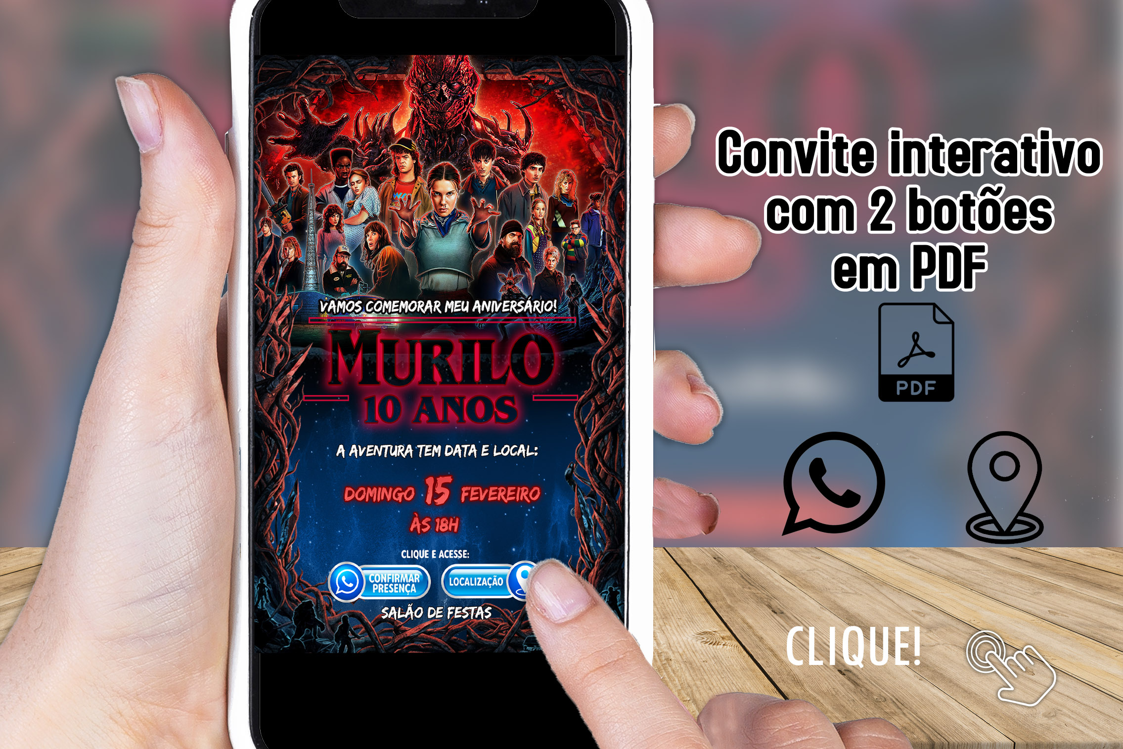 Convite Digital Interativo Stranger Things em PDF com Botões Clicáveis