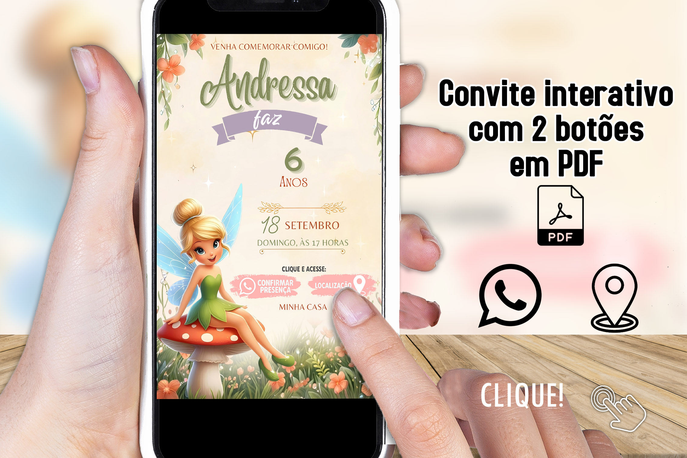 Convite Digital Interativo Tinkerbell Sininho em PDF com Botões Clicáveis