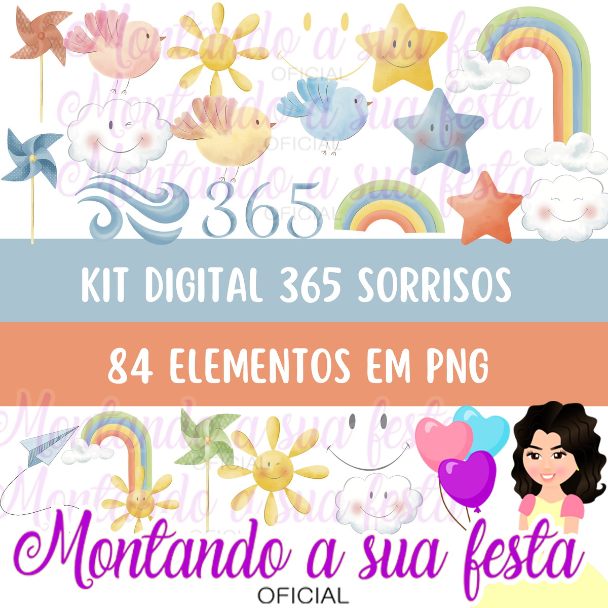 O kit vem com 84 Elementos em PNG. Contém todos os elementos da foto.