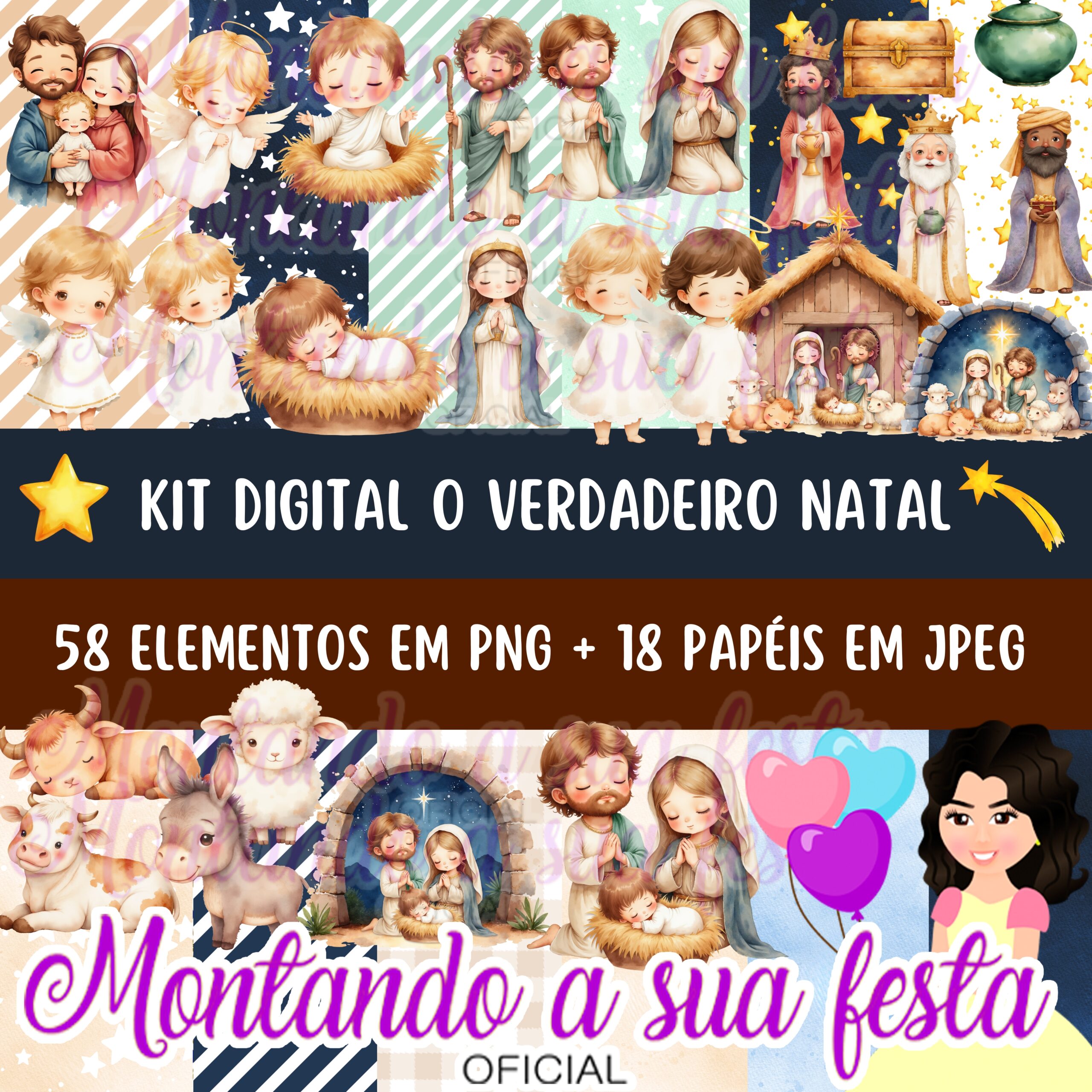 O kit vem com 58 Elementos em PNG e 18 papéis em JPG. Contém todos os elementos da foto.