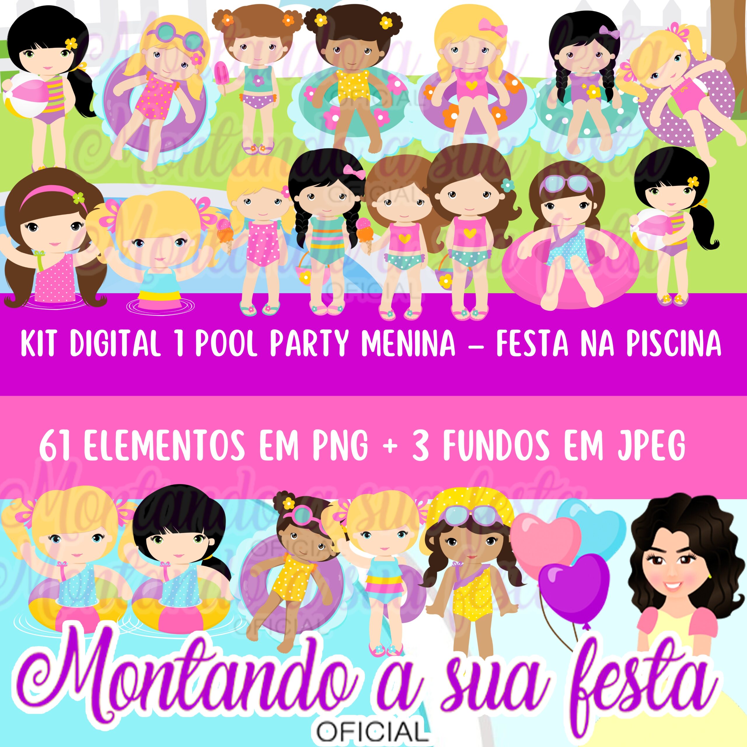 Kit Digital 1 Pool Party Menina – Festa na Piscina